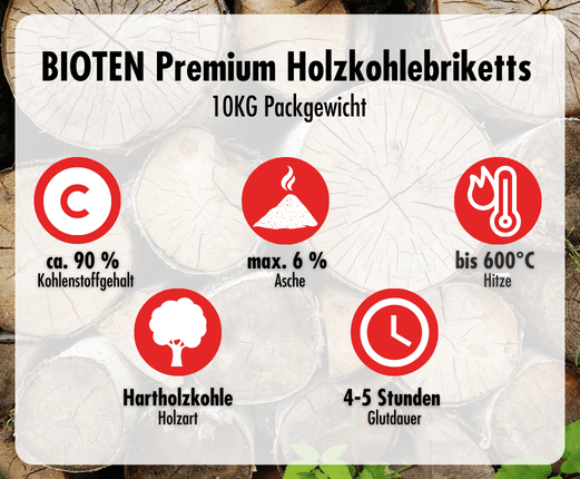 Produktinformationen "BIOTEN Premium Grill Holzkohlebriketts 10kg"