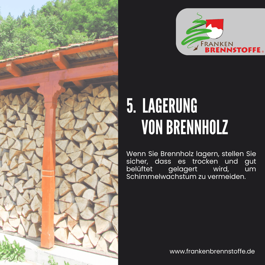 Wenn Sie Brennholz lagern, stellen Sie sicher, dass es trocken und gut belüftet gelagert wird, um Schimmelwachstum zu vermeiden. - Ofenprüfung