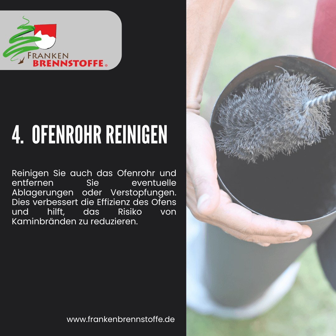 Reinigen Sie den Ofen gründlich, um Rußablagerungen und Rückstände zu entfernen. Dies ist wichtig, um die Lebensdauer des Ofens zu verlängern und das Risiko von Kaminbränden zu reduzieren. - Schornsteinfeger