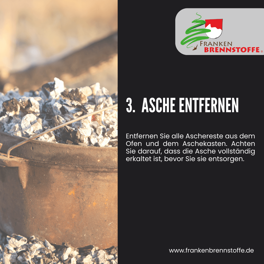 Beauftragen Sie einen professionellen Schornsteinfeger, um den Schornstein und das Abgassystem zu überprüfen und zu reinigen. Dies sollte mindestens einmal im Jahr erfolgen, auch wenn die Heizsaison vorbei ist. - Asche entfernen